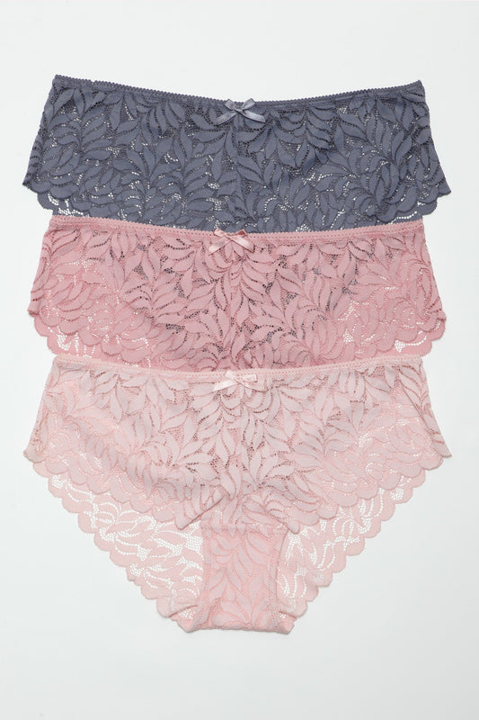 Livvy Hipster 3 Pack Panties with Leaf Lace Design for Natural Elegance